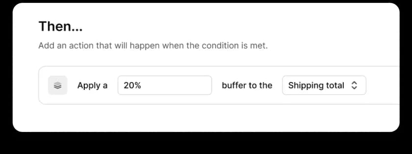 For example, if you wanted to add a buffer to only a specific shipping carrier, you would set the action to “apply a buffer” and enter the amount of your buffer and what it applies to. You can then control which carrier exactly the buffer applies to by specifying that in the rule’s condition.